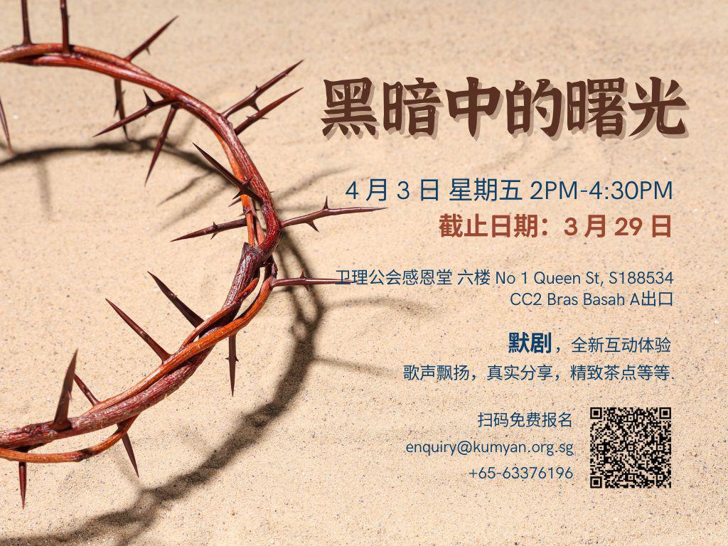 Welcome to Kum Yan Methodist Church Join us for church every Sunday SUNDAY SERVICES We are Kum Yan –a caring community, a lighthouse and home in the City We warmly welcome you to our community! Connect with us Church Bulletins Q Church Bulletins Have a quick read on what's happening in the life of Church. English Bulletin YC Bulletin Mandarin Bulletin Cantonese Bulletin Coming Up 03 Apr 2026 2:00 pm - 4:30 pm 华语受难节外展聚会 Mandarin Good Friday Outreach Event 05 Apr 2026 11:15 am - 12:45 pm 粤语复活节福音主日 Cantonese Easter Sunday Service VIEW ALL EVENTS Grow & Glow Resources to build your faith journey GET STARTED READ LISTEN